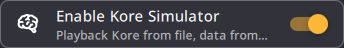 | Kore simulation toggle | Allows you to enable or disable the Kore simulation. | ![]() |