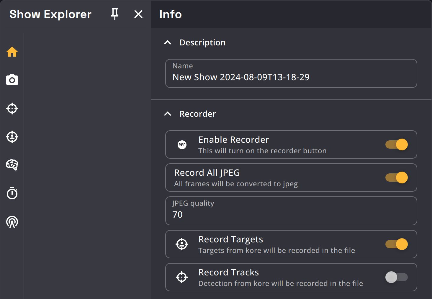Targets and Trackers position can now be recorded in your .kramera files. This allows you to record the tracking data and replay it later. This feature is useful for debugging or for creating a show without having to connect to a real Kapta.
