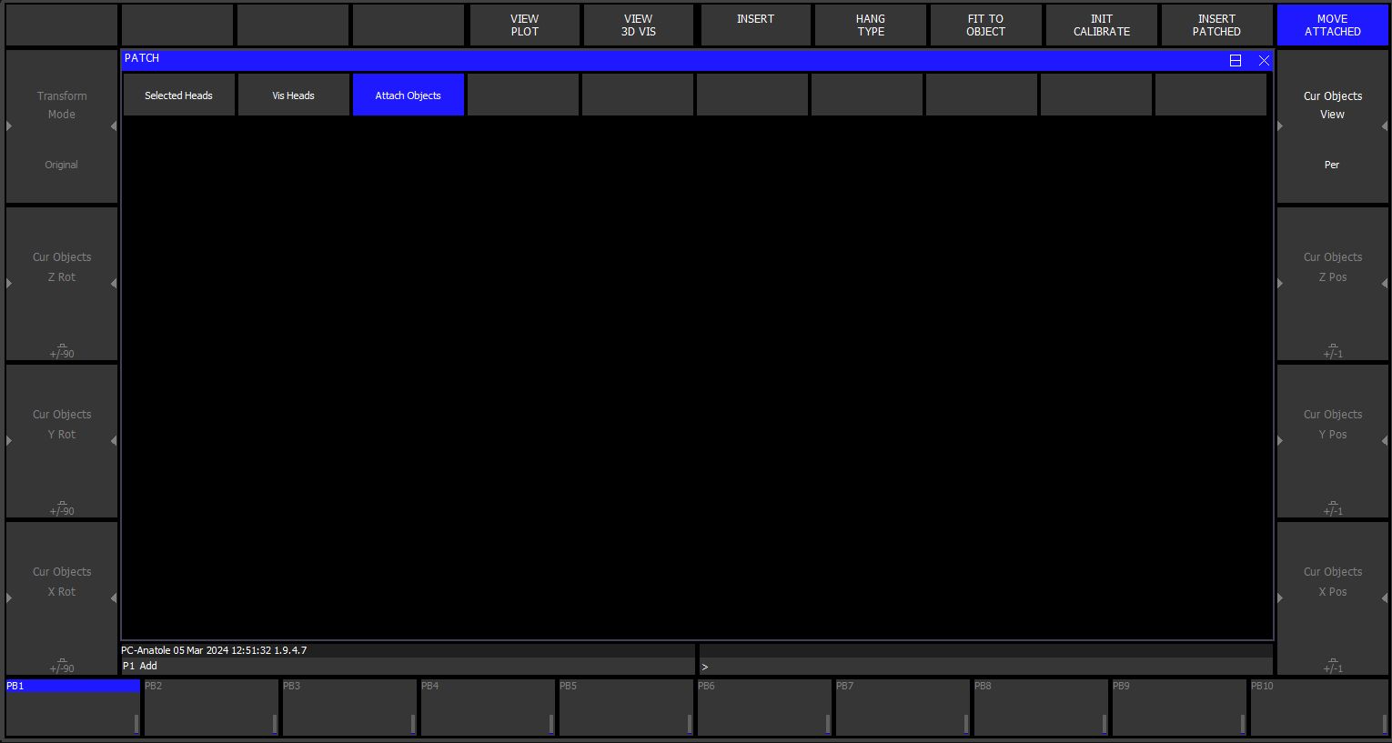 Once you have stored the positions, you can calibrate the fixtures by going to PATCH > VIEW VIS > Attach Object and clicking on CALIBRATE HEADS (it replaces the INIT CALIBRATE button you pressed earlier).