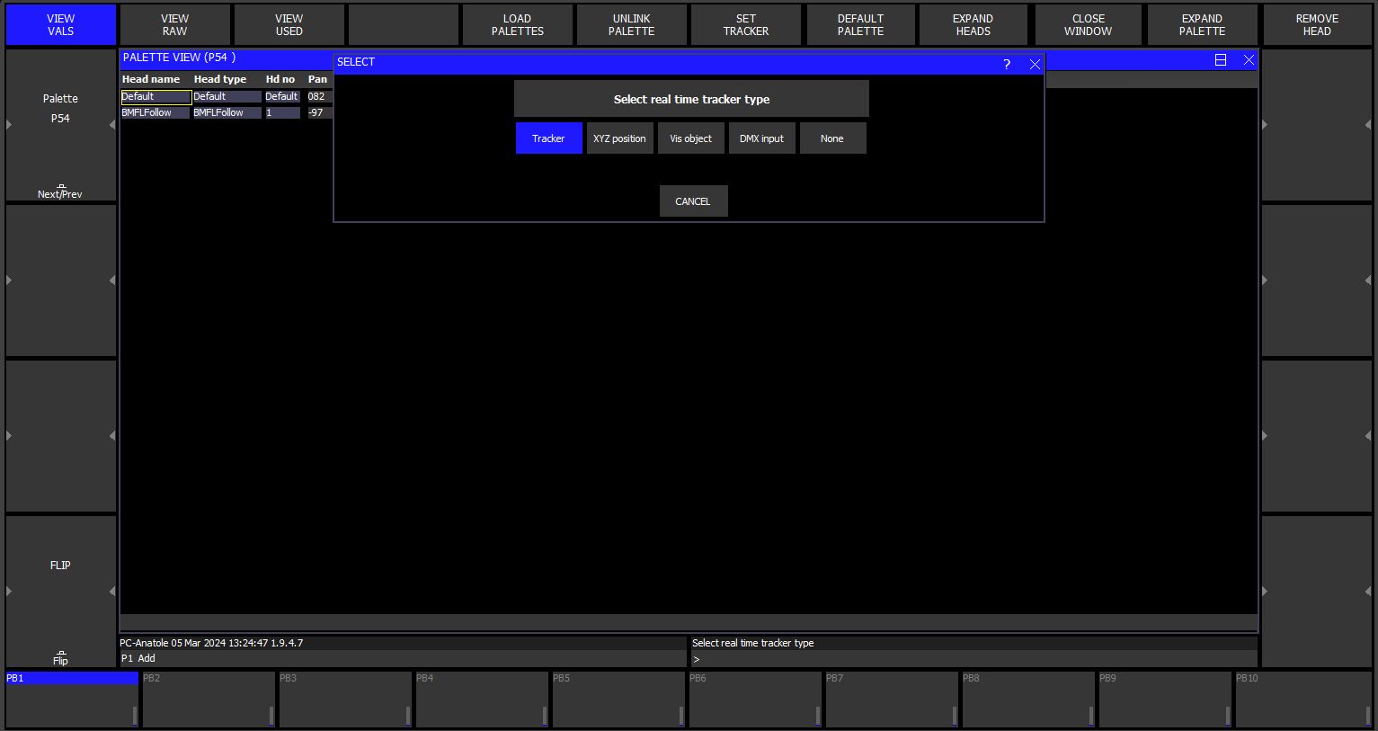 To create a Tracker Palette, you will need to first create a new position palette with the heads you want to use.