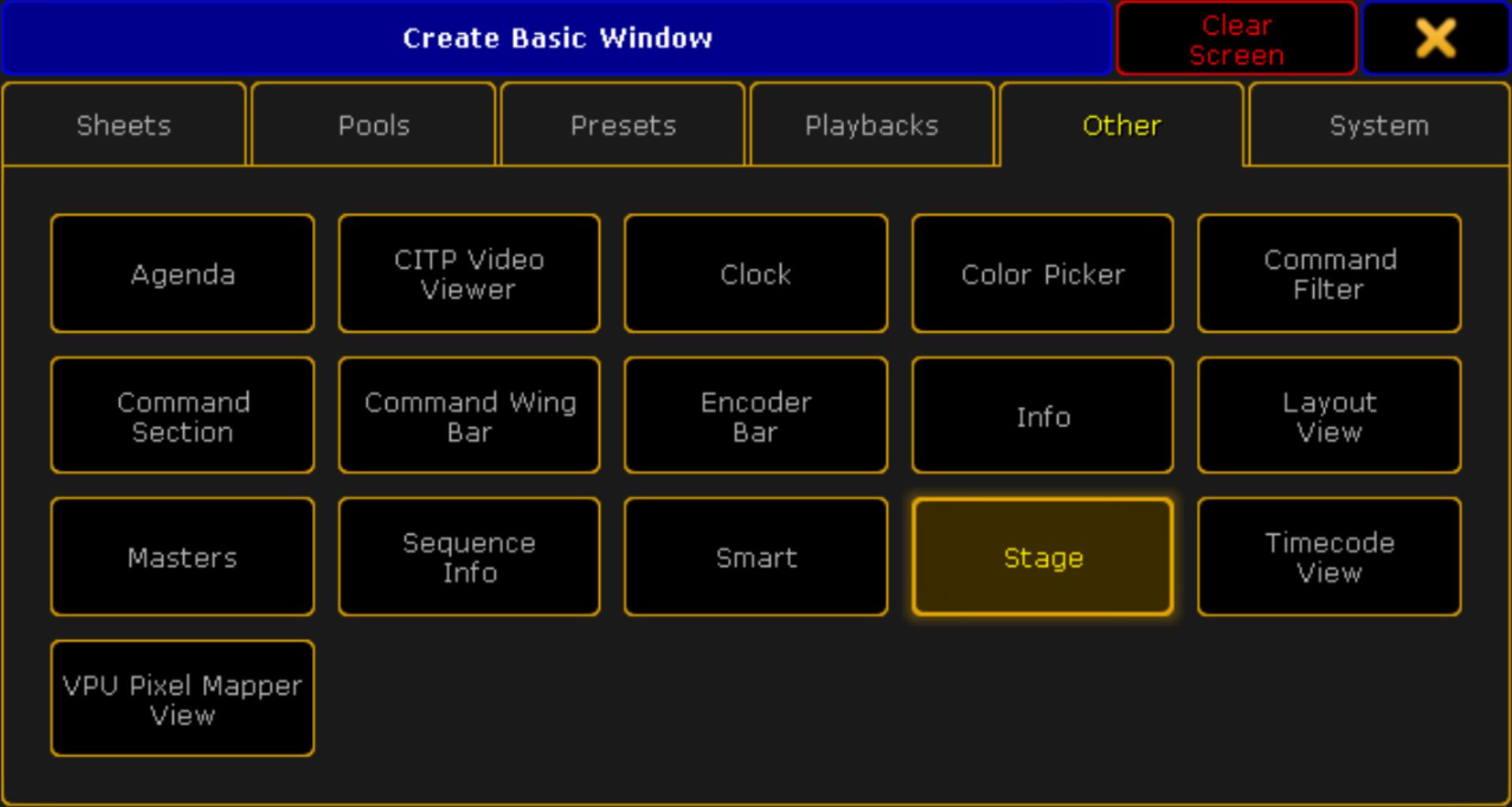 - Create a "Stage View" in your show (located in the "Other" tab).
