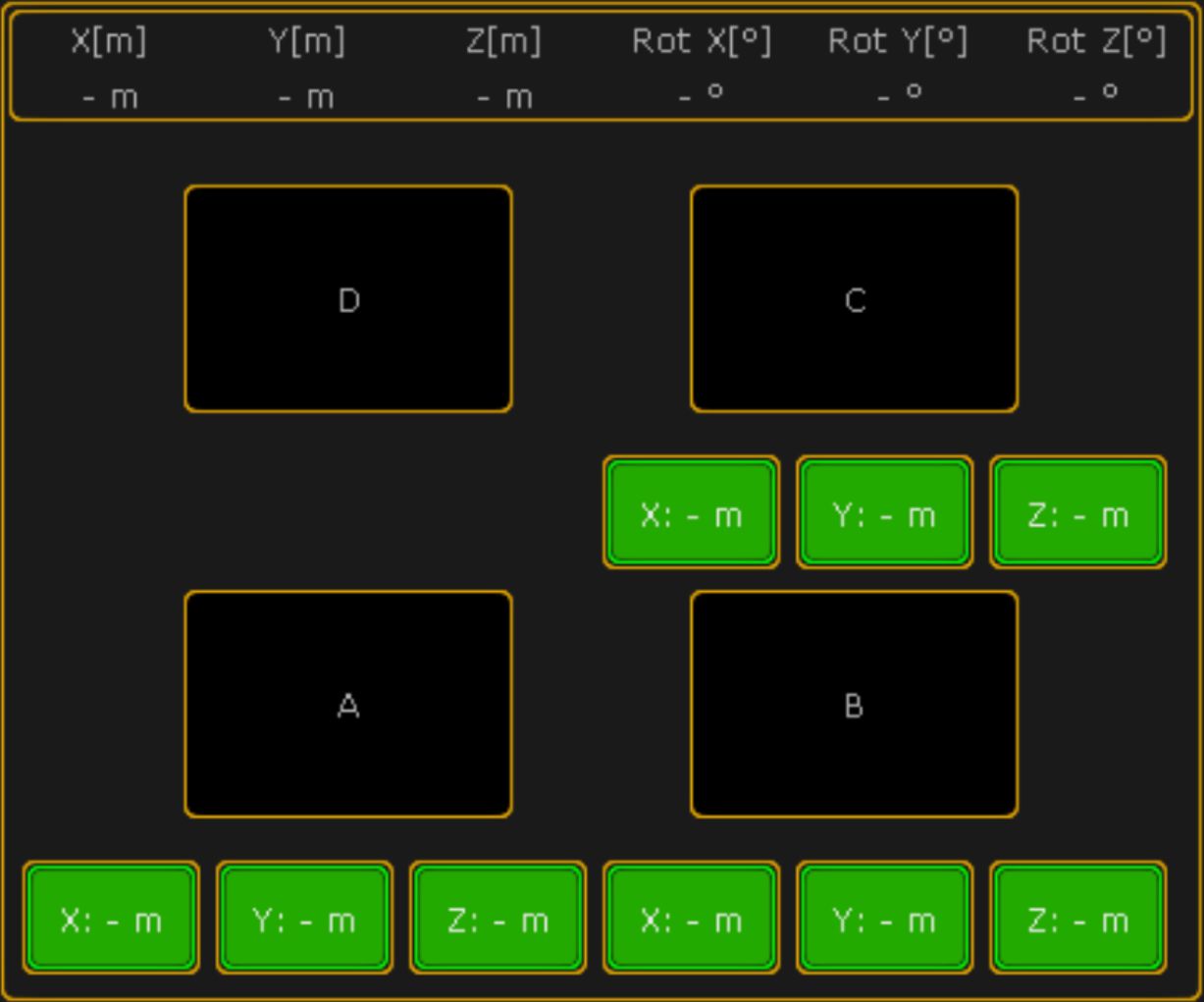 On a standard stage setup, we recommend using the same rectangle used in the calibration process of the Kapta to calibrate the fixtures. This allows you, if you open the calibration window of Kratos, to have a clear top view of the stage and calibrate the fixtures without having to look at the stage directly : just point the beam at the 4 crosses making the corners of the calibration rectangle. Be careful that the origin of the calibration rectangles are not the same in Kratos and in GrandMA : Kratos uses the middle of the X side of the rectangle as the origin whereas GranMA uses the A point. If you use the same rectangle, you can hover on the orange corner in the calibration window of Kratos to tell the coordinates to use for the A point in GrandMA.
