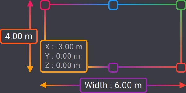 - If your rectangle is at a level plane of your stage, you can use the Absolute mode. In this mode you define the X, Y and Z position of corner A and then you specify the distance from corner A to corner B and corner D. This mode is the standard mode and is used in the majority of the cases.