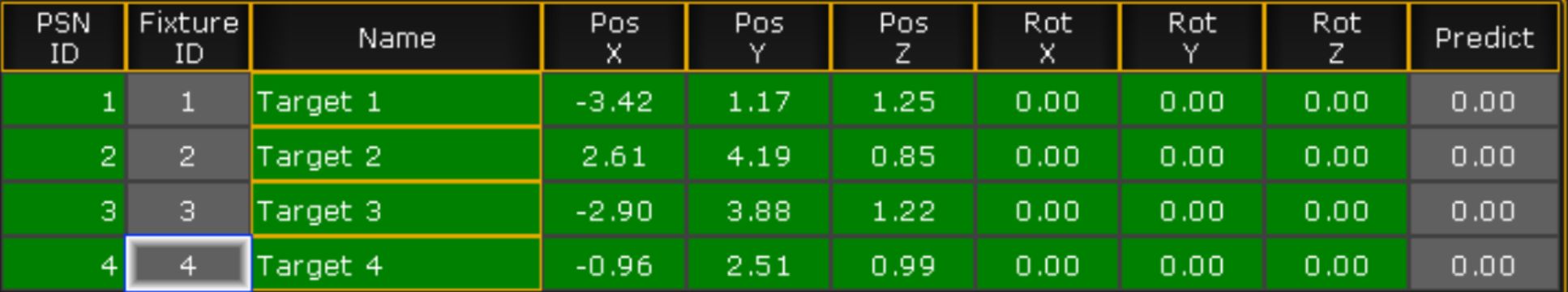 - Go to the Tracker View of the desired PSN server (see the tutorial Send Targets position to GrandMA 2) and fill in the Fixture ID column of each Target with the Stage Marker Id you want to associate with.