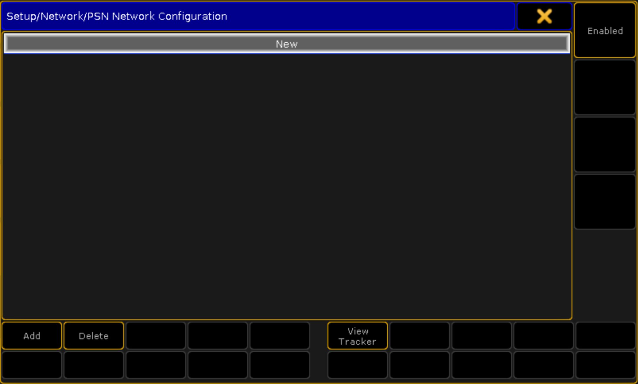 Setup -> Network -> PSN Network Configuration, enable the PSN function with the big "Enabled" button in the upper right side of the window and Add a line with the "Add" button at the bottom left of the window.