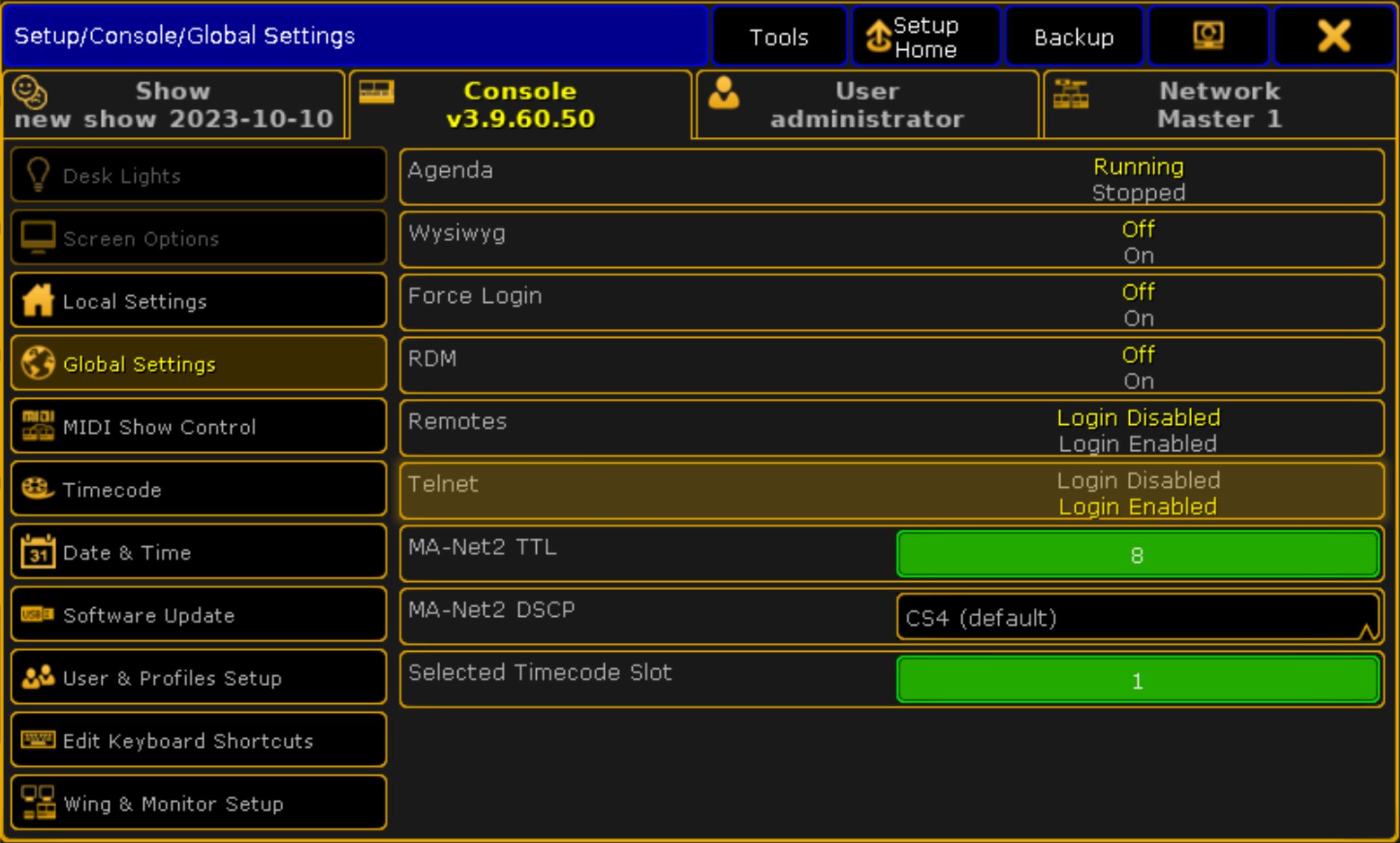 You can find more information about Telnet remote on the MA help page.