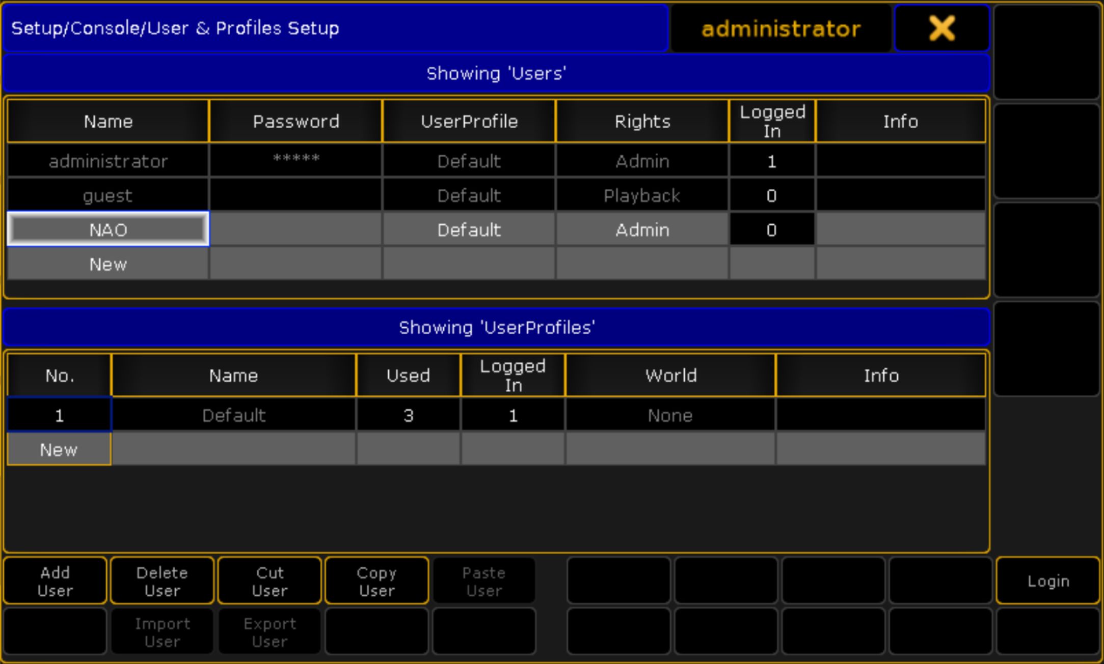 - It is a good practice to create a special user for the Telnet command with Admin Rights (be aware that the Telnet connection is case sensitive with the username and password).