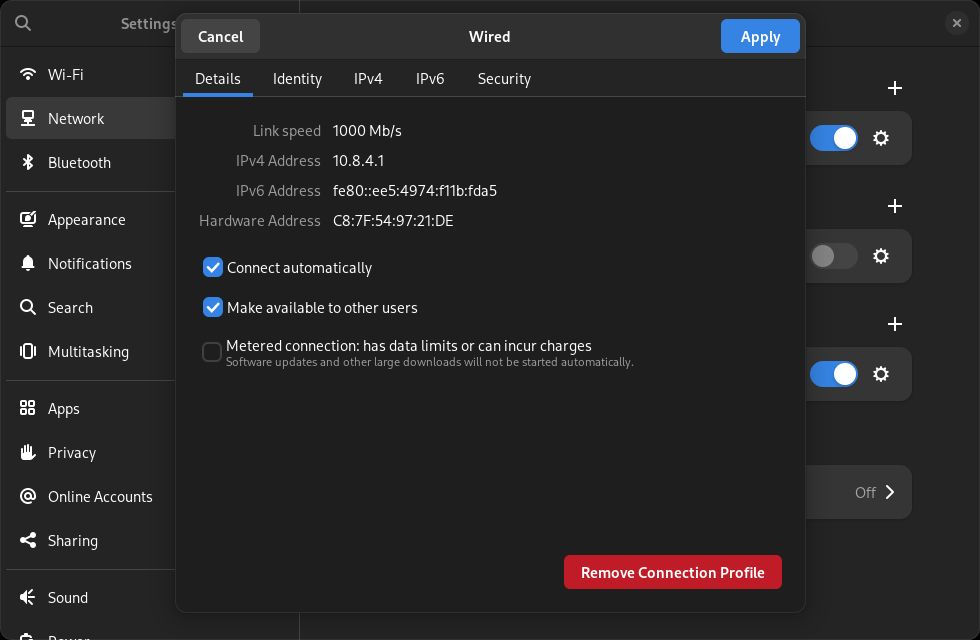 - With the dedicated switch, turn off and on the network card for the modifications to be taken into account before closing the Settings window.