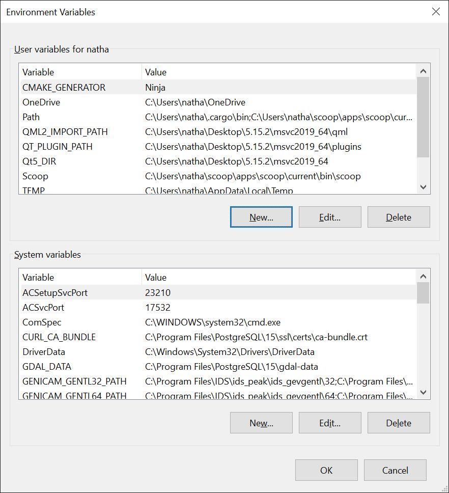 - Create a new user variable by clicking on the "New..." button in the "User variables for