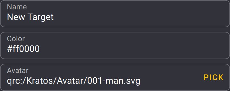 - Smoothing : You can use this parameter to smooth the position of a Target by averaging it's position over a period of time. The value chosen corresponds to the period of time Kratos will take to average the position of a Target in microseconds. This parameter is useful to smooth out any noise in the target's measured position.