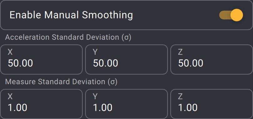 - Acceleration Standard Deviation : Expected noise in the tag's acceleration (in m/s2).