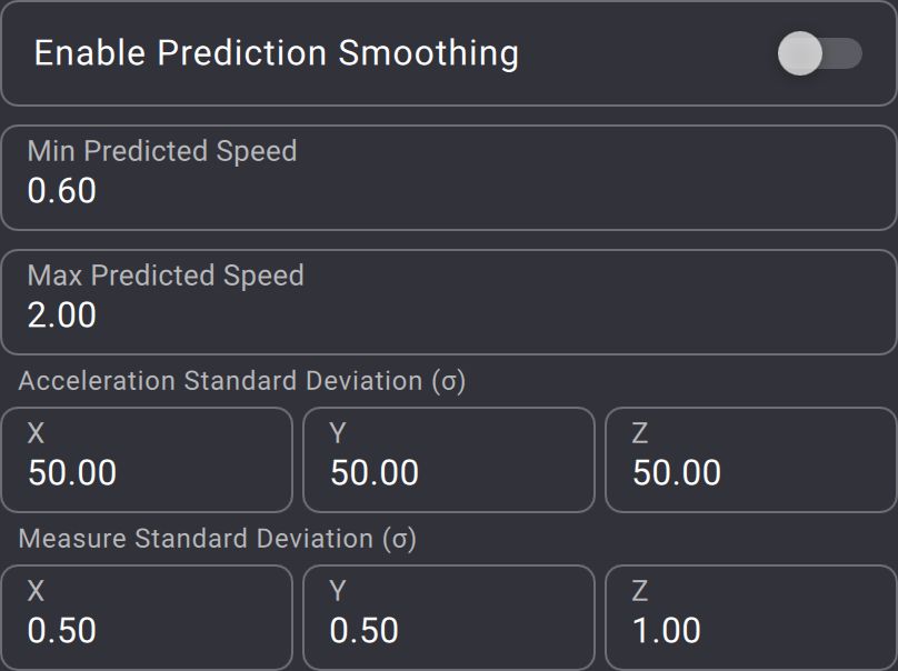 - Min and Max Predicted speed : Clamp the speed values of the filter (in m/s).
