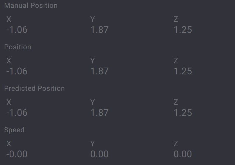 You can monitor the position and speed of the Target here. The "Predicted Position" is the post-processed position (with all the parameters applied : prediction, smoothing, etc...).