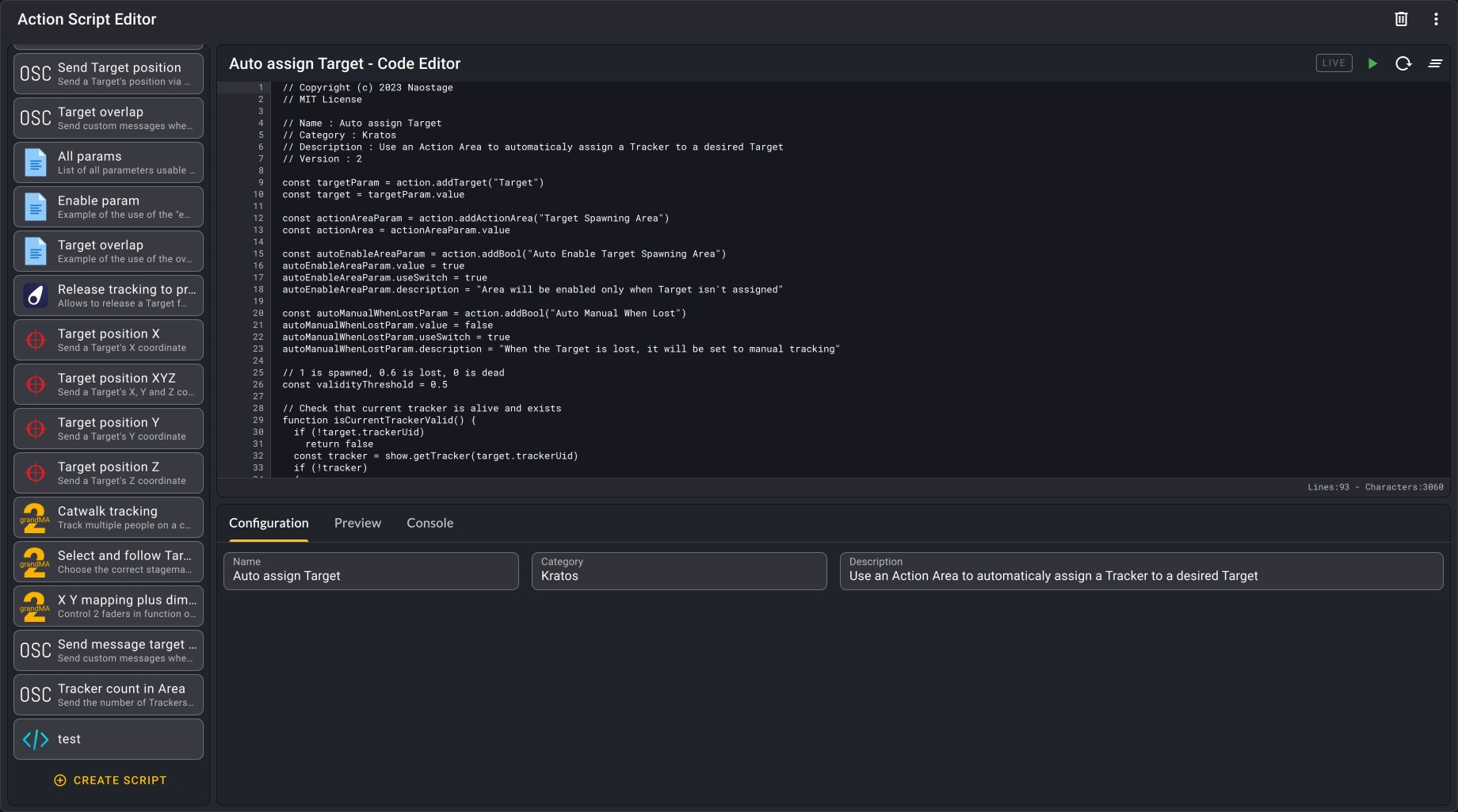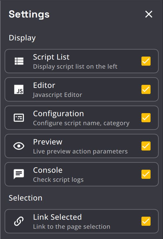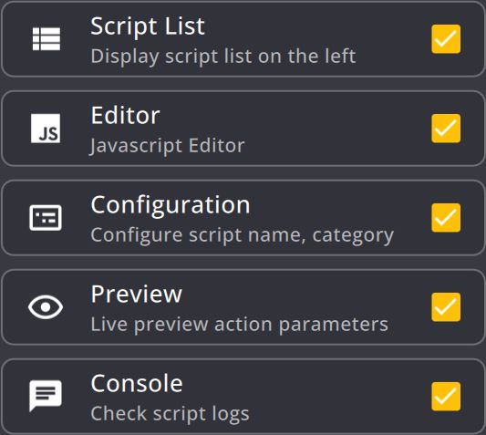 The Editor view allows you to manage all your scripts that can be used in Actions.