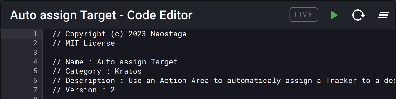 To test a script without creating an Action, you can run it in the Editor view. Some controls are present at the top right of the code editor window.