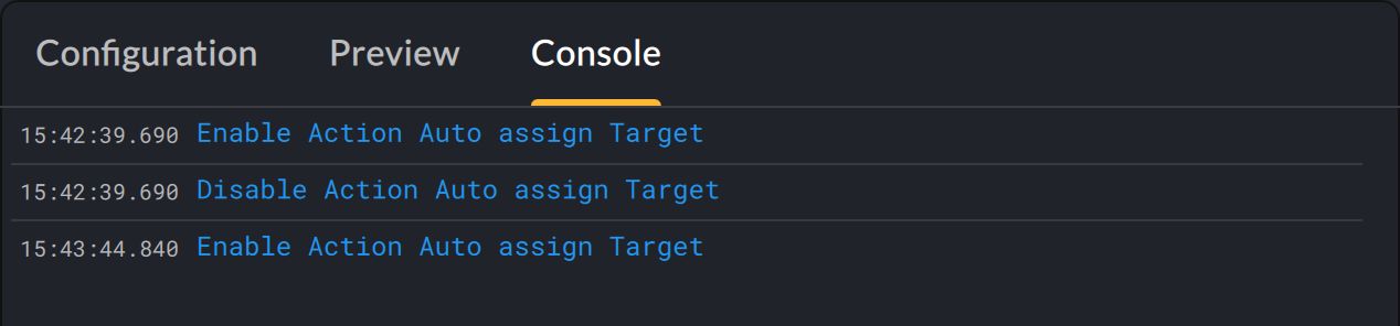 | Console tab | The console tab allows you to see the console output of the script when it runs. It is useful to debug your script. | ![]() |